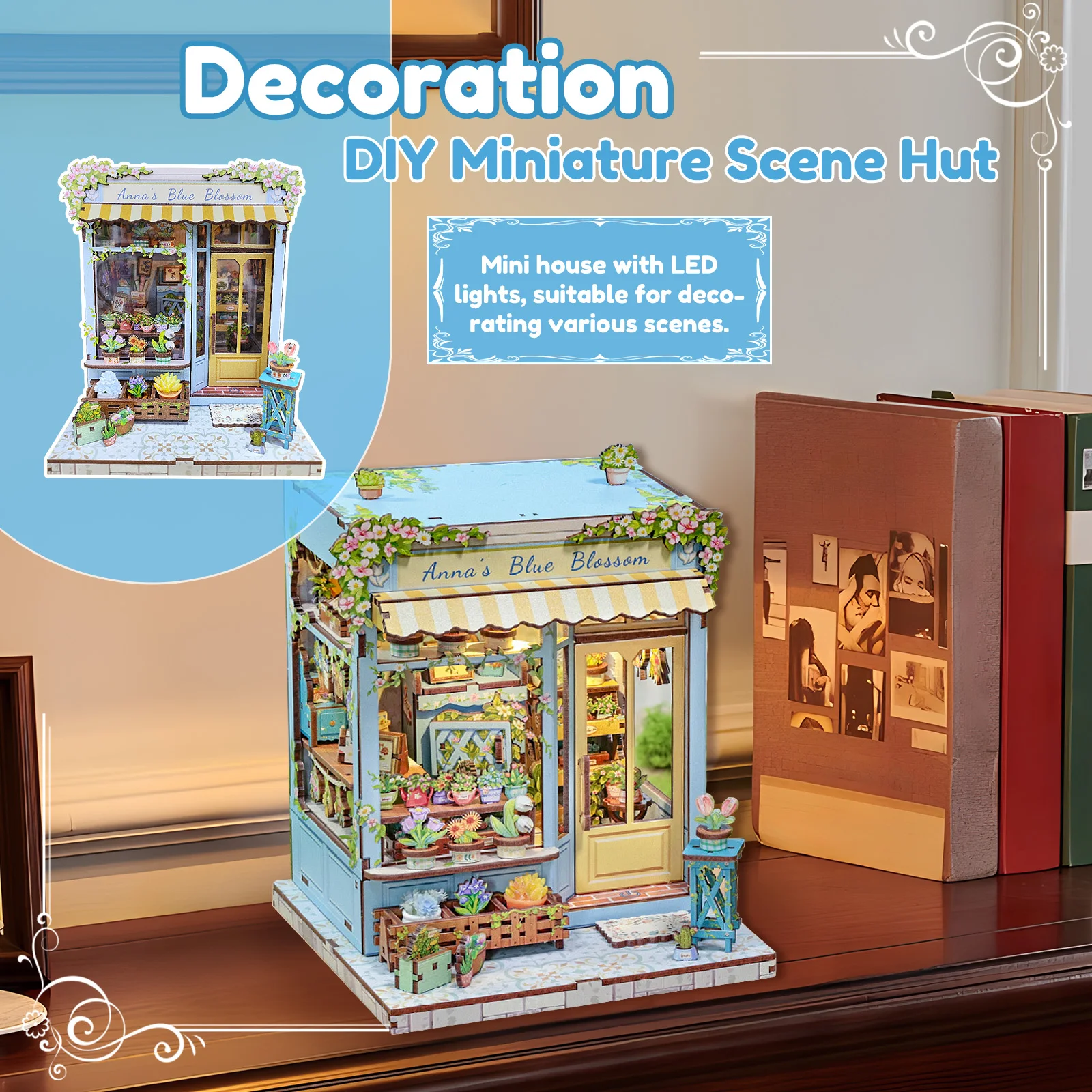 Decorative Item : The mini house with LED lights is suitable for most decorative styles . You can place the DIY mini house as interior decoration in living rooms , studies , bedrooms , study rooms , photo studios , workshops , offices , stationery stores and cafes