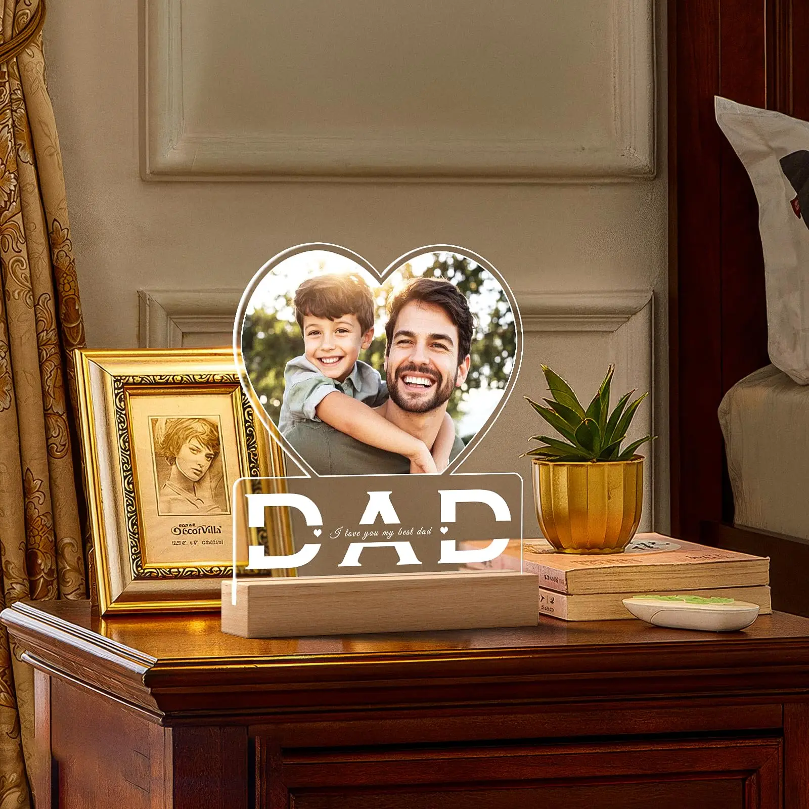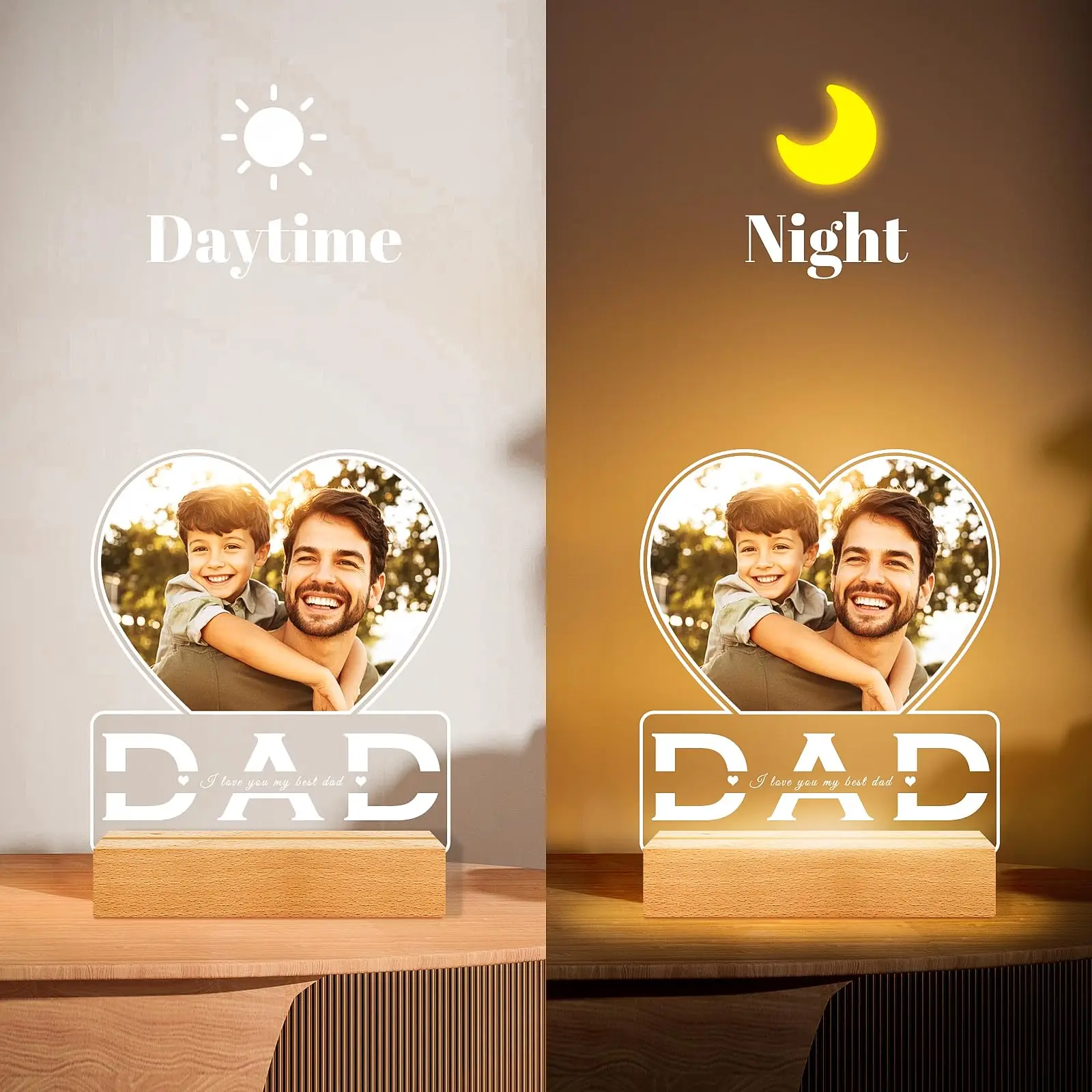 ✨ Warm LED Glow – Soft lighting makes photos and “DAD” text extra touching