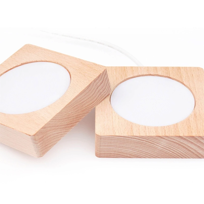 The wooden light base stand with USB plug, easy for charging.