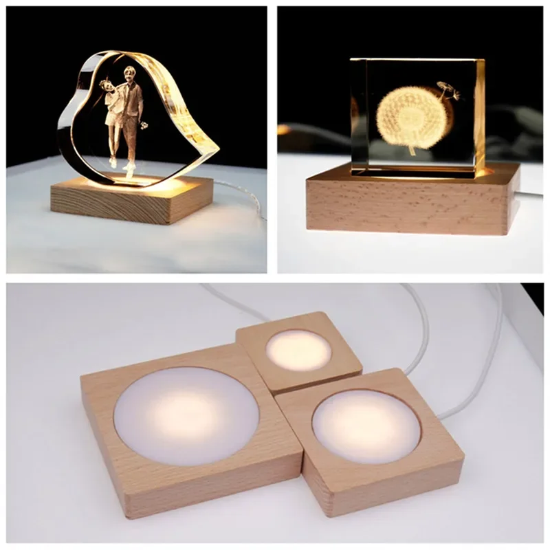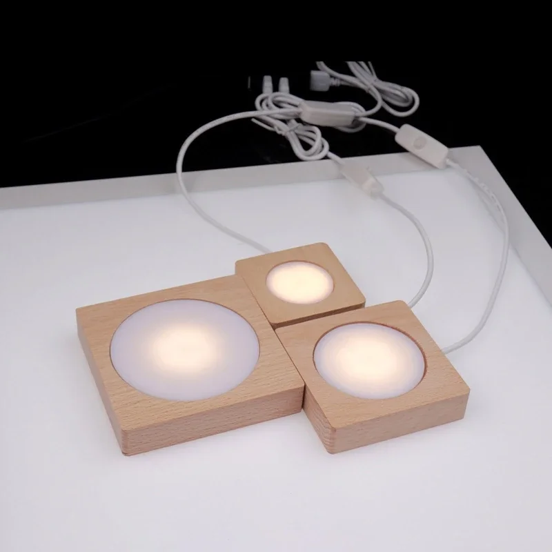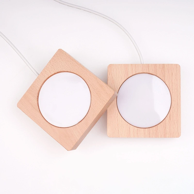 The wooden light base stand with USB plug, easy for charging.