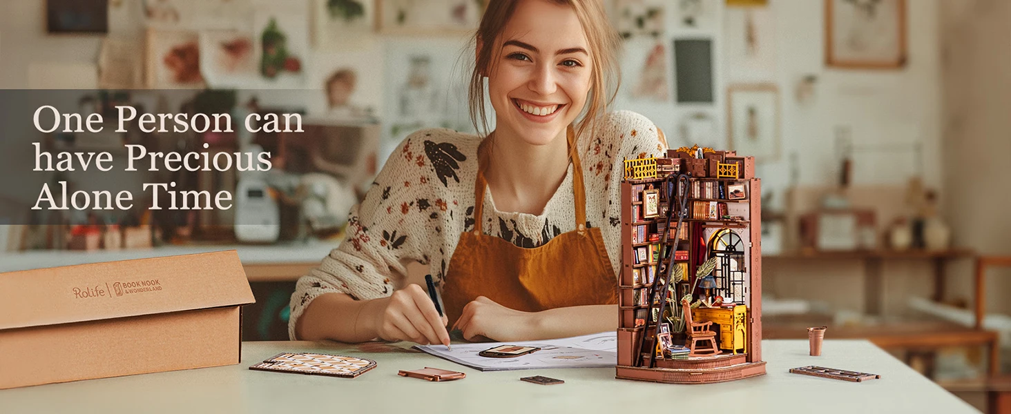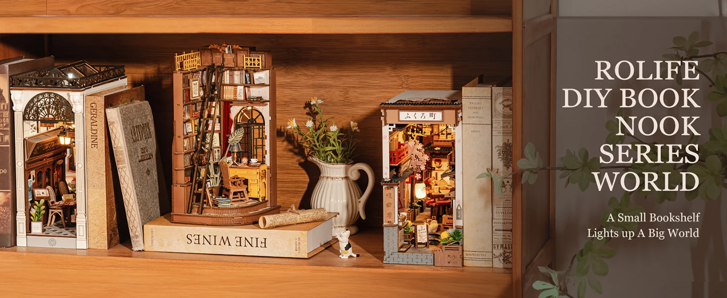 Step into a cozy, vintage-inspired study brimming with classic charm. The Rolife Silent Corner Study Book Nook recreates a serene reading space where books, plants, and memories converge—perfect for book lovers, creatives, and nostalgic souls.