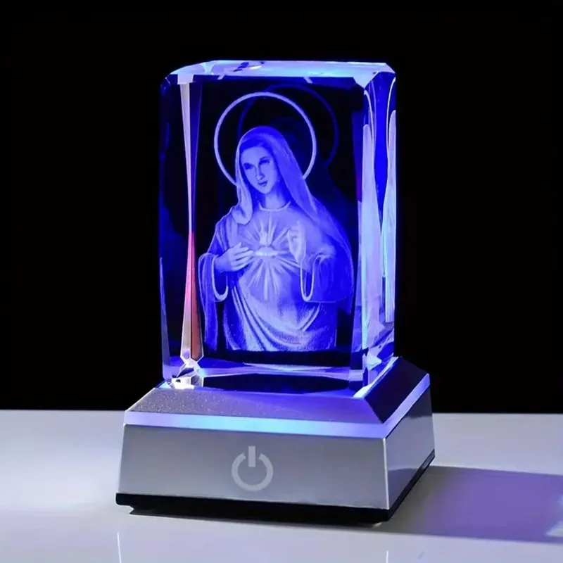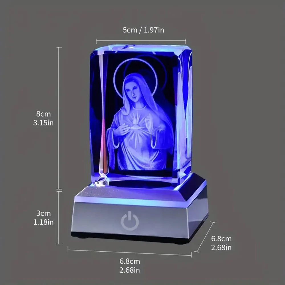 1pc Crystal Virgin Mary Statue with Multicolor LED Night Light, Multicolor Adjustment, Cube Gift for Women, Wife, Mother, Birthday, Mother’S Day, Christmas, Halloween, Valentine’S Day