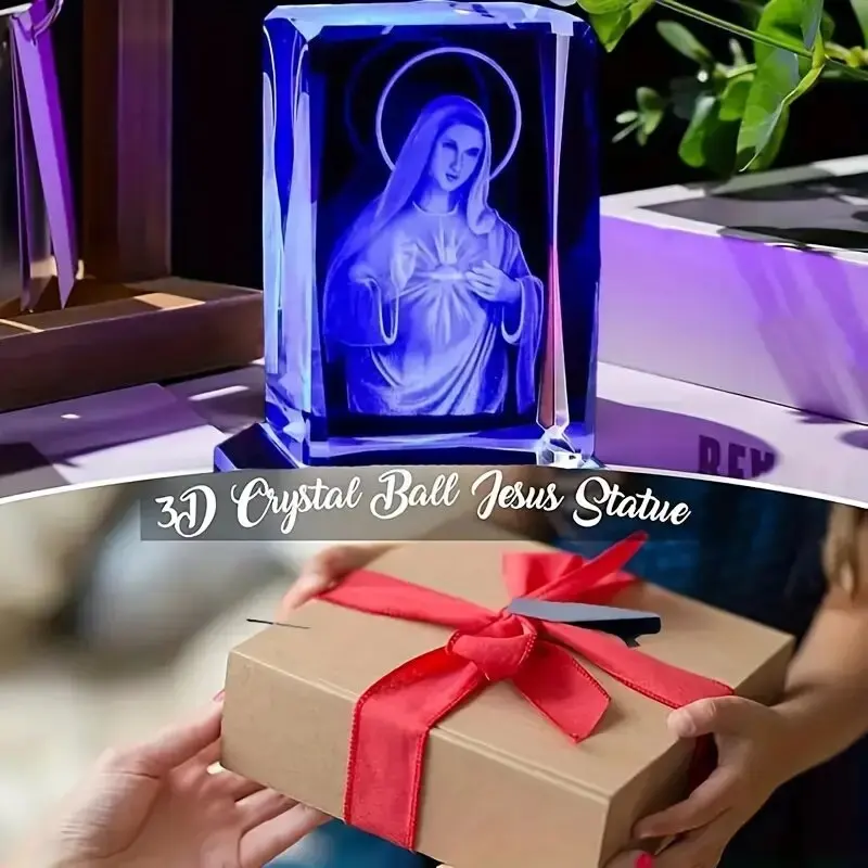 This Virgin Mary statue is crafted with laser engraving, showcasing a clear, vibrant, and three-dimensional design that is durable and won’t fade. Made from premium K9 crystal, the package comes with a 3D crystal gift, a gift box, a charging cable, and an LED base. The elegant packaging makes it an ideal present for any event.