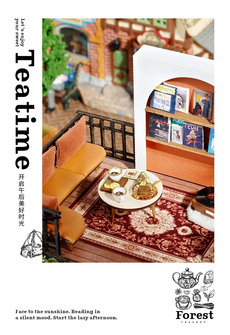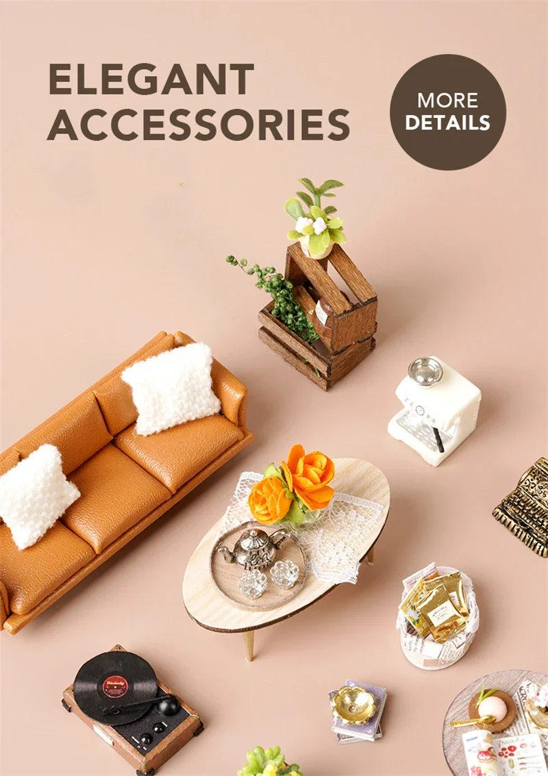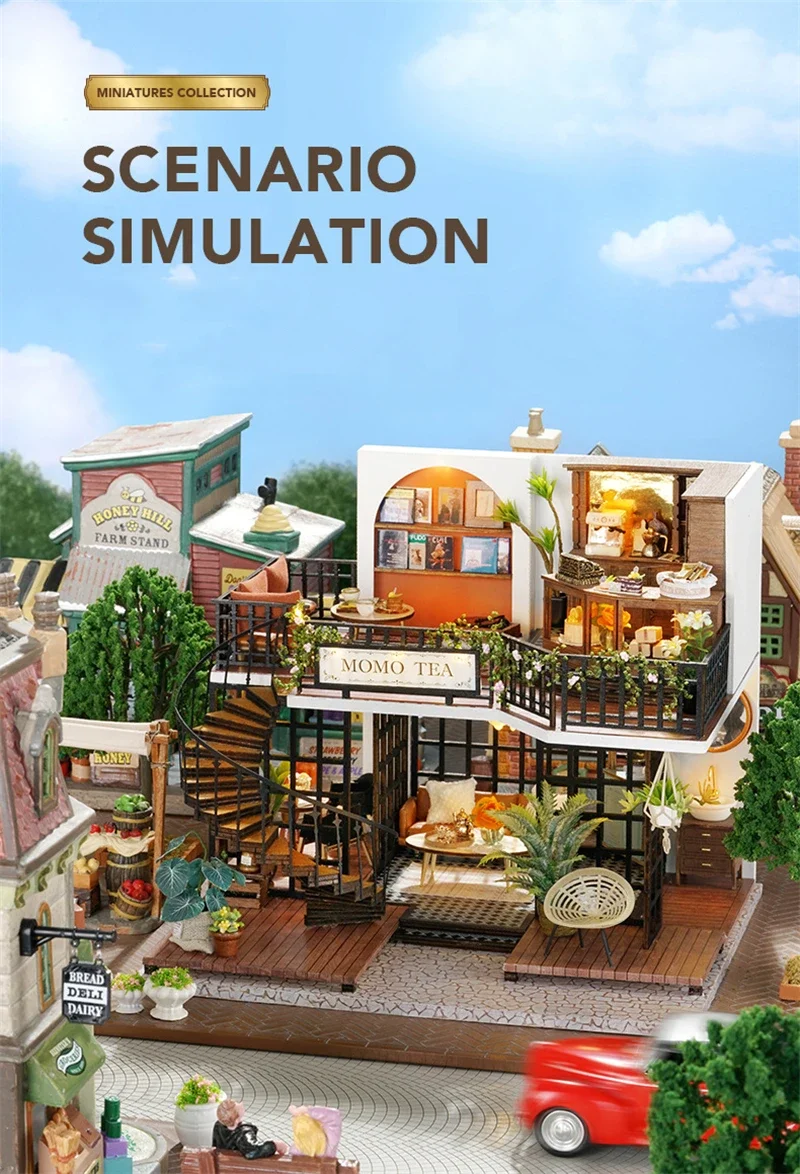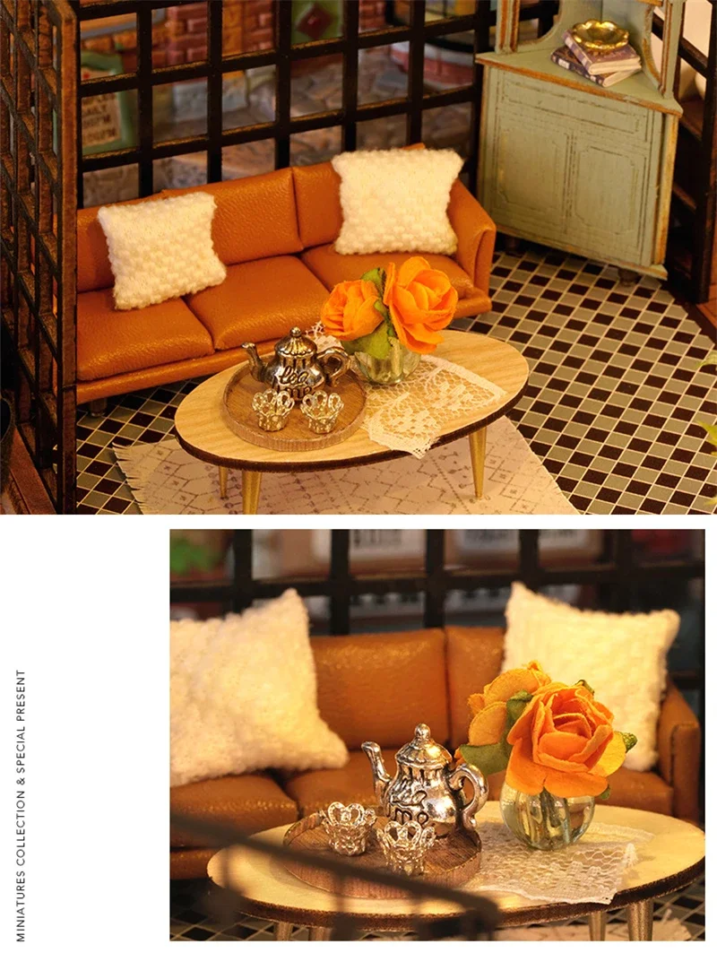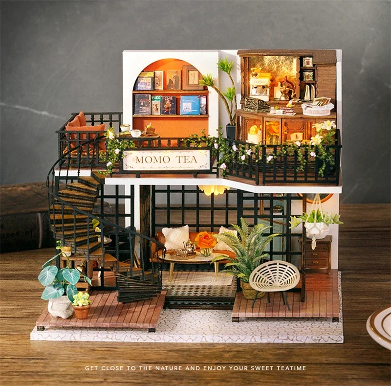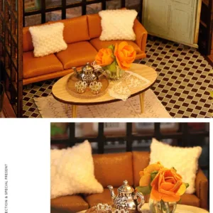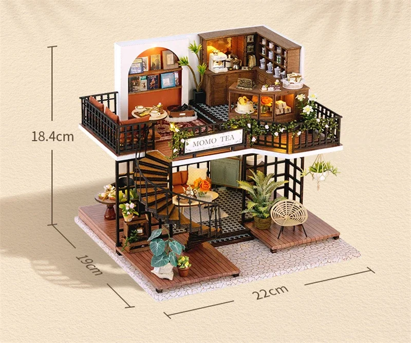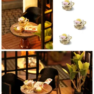 Crafted with precision, every element of the Mini Dollhouse Kits DIY  has been thoughtfully designed to meet the highest standards of quality. The kit includes laser-cut wooden pieces, fabric, paper, LED lights, and other miniature accessories that help bring your tea shop to life. Each item is easy to assemble and blends seamlessly to create an intricate and realistic-looking miniature space. The attention to detail ensures that this dollhouse is not only a joy to build but also an aesthetically stunning piece to display.Mini Dollhouse Kits DIY