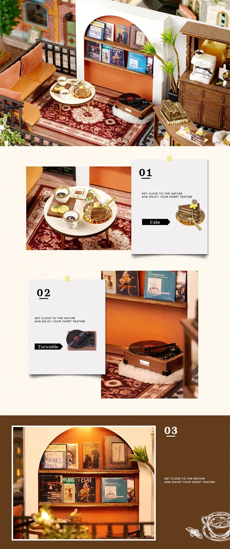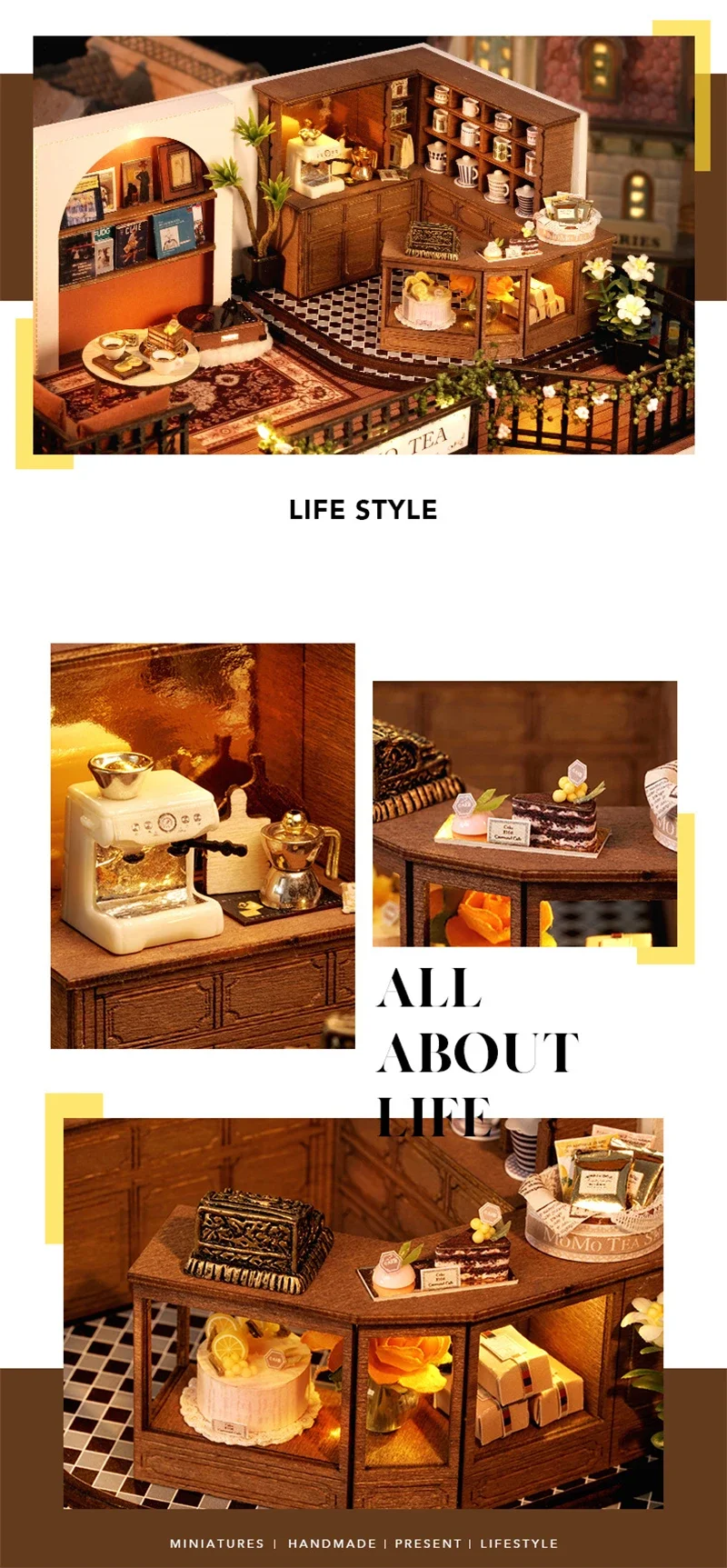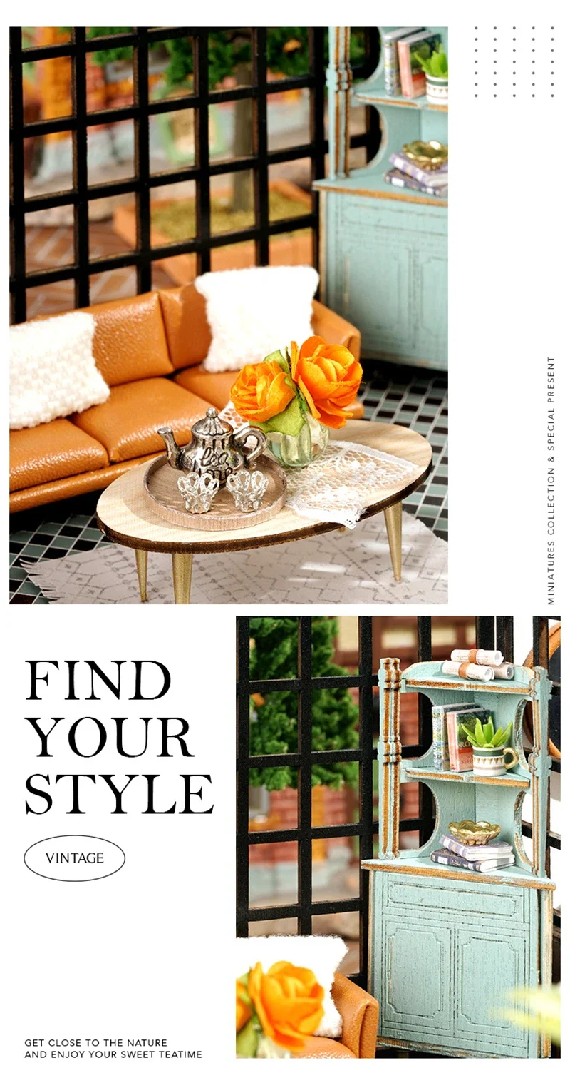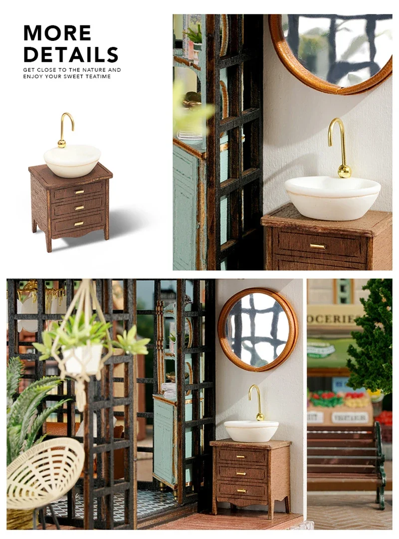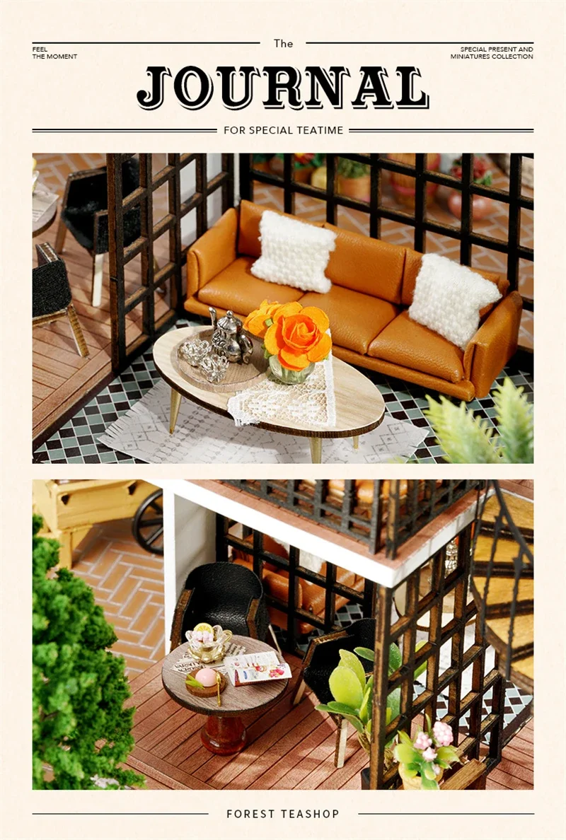 Crafted with precision, every element of the Mini Dollhouse Kits DIY  has been thoughtfully designed to meet the highest standards of quality. The kit includes laser-cut wooden pieces, fabric, paper, LED lights, and other miniature accessories that help bring your tea shop to life. Each item is easy to assemble and blends seamlessly to create an intricate and realistic-looking miniature space. The attention to detail ensures that this dollhouse is not only a joy to build but also an aesthetically stunning piece to display.Mini Dollhouse Kits DIY