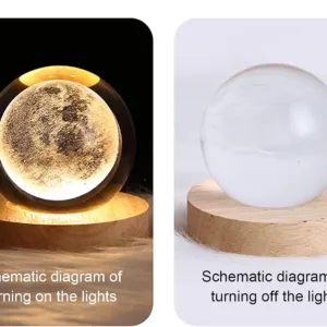 1.Exquisite 3D Laser Engraved Crystal Ball:Crystal Ball 3D Night Light Gift  comes in four different styles, featuring advanced 3D laser engraving techniques. The 3D crystal ball LED night light showcases various themes like the solar system, ensuring that the crystal maintains its brilliance even after long-term use. Perfectly crafted, these 3D crystal ball decorations create a romantic ambiance for both children and adults. The LED-lit wooden base adds a warm and bright glow, making it a stunning centerpiece in any room.