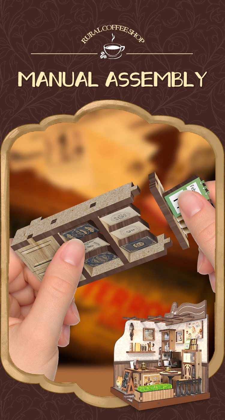Crafted to evoke the natural beauty of rural landscapes, the Rural Coffee Wooden City Models Crafts DIY kit is the perfect addition to your creative endeavors. These highly detailed, wooden replicas of cityscapes allow you to bring a sense of timeless elegance to your home, office, or studio. Designed for hobbyists and decor enthusiasts alike, this DIY set combines artistry and functionality, creating a unique piece of handcrafted decor that tells a story.