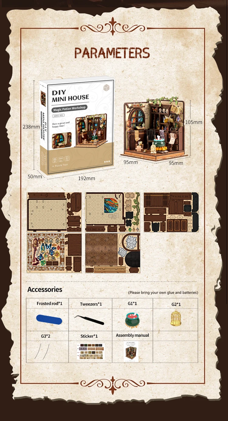 Glue and batteries need to be prepared by yourself